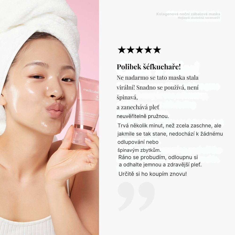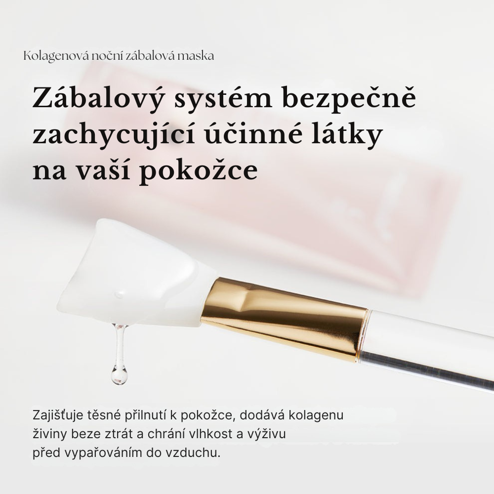 Pro optimální výsledky doporučujeme zařadit kolagenovou masku do vaší noční pečující rutiny 1–2× týdně.
